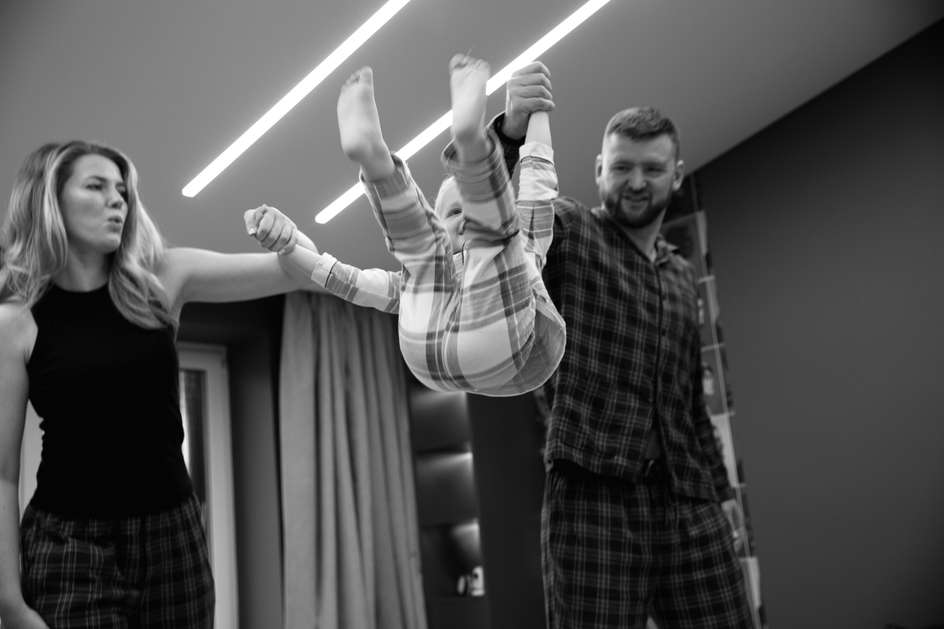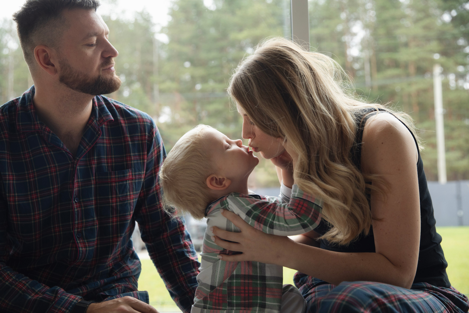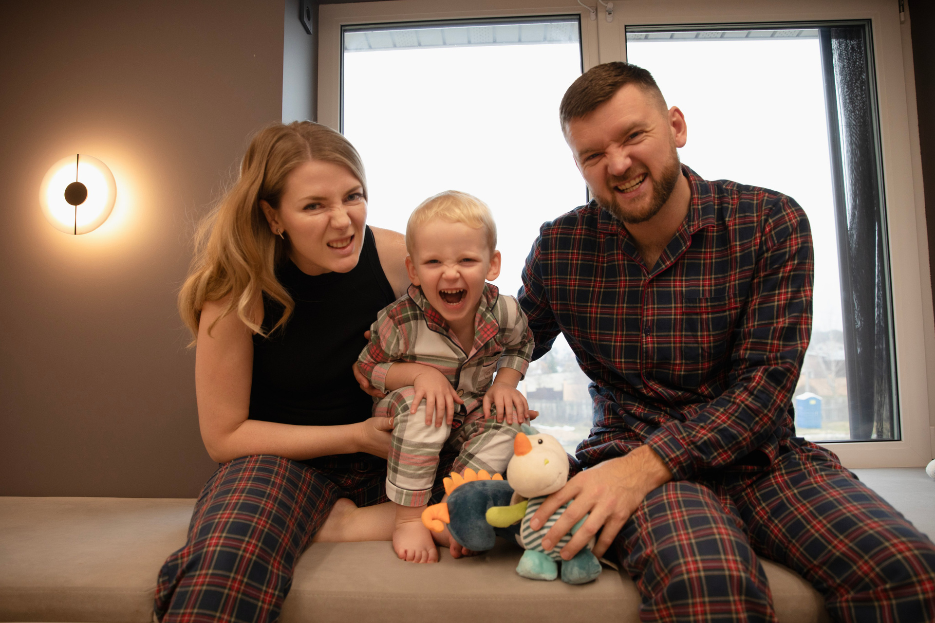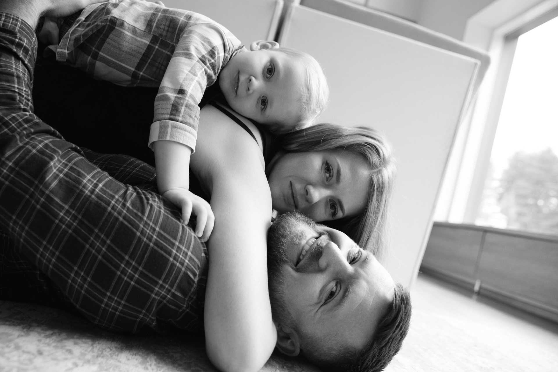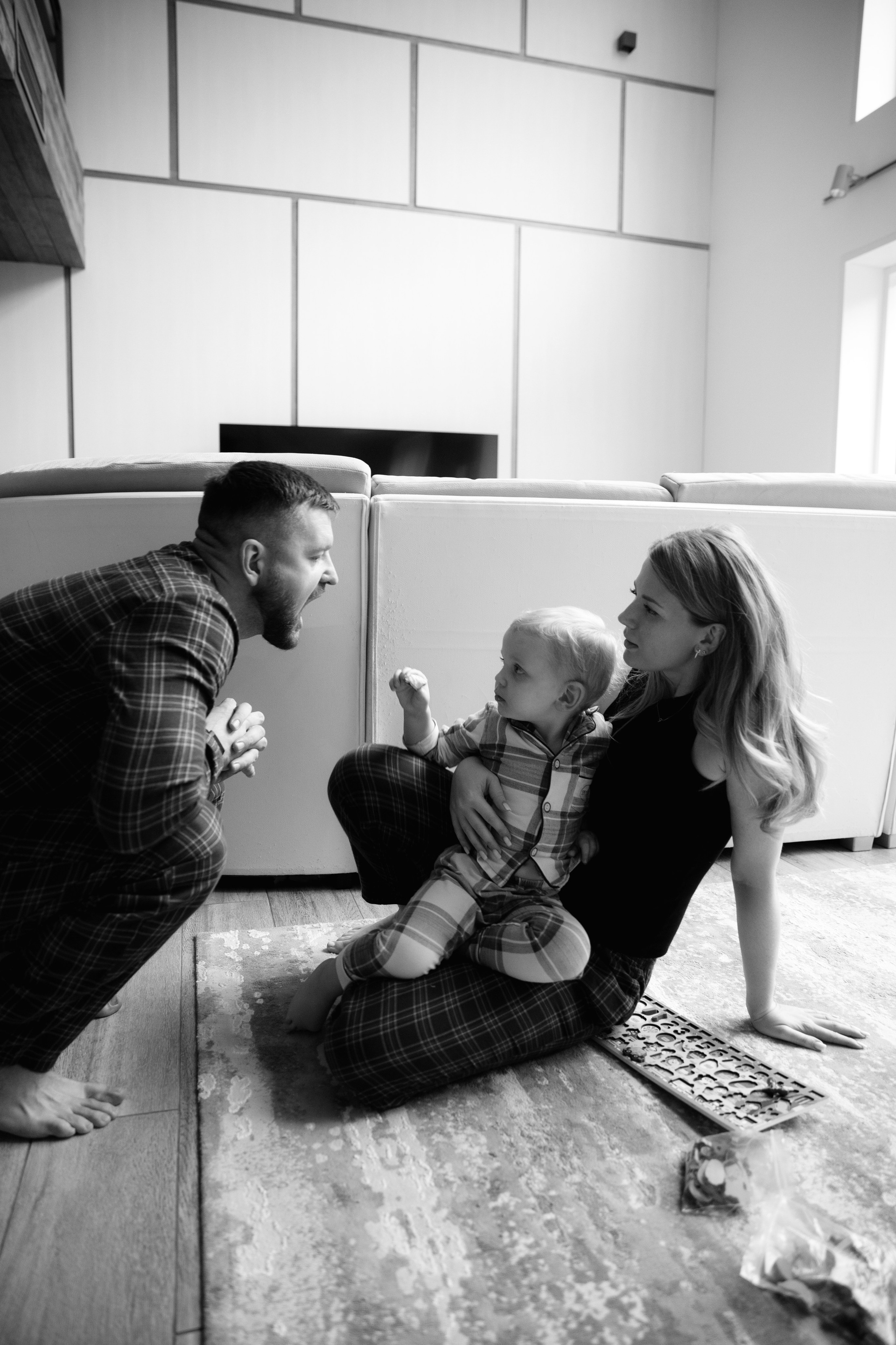 Домашняя съемка красивой семьи в солнечной квартире