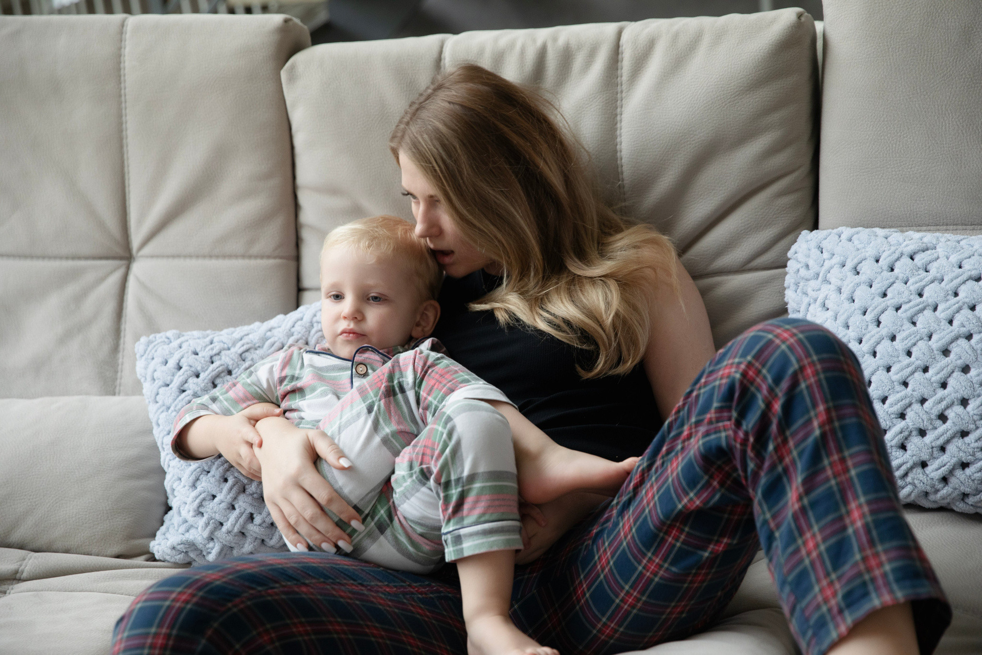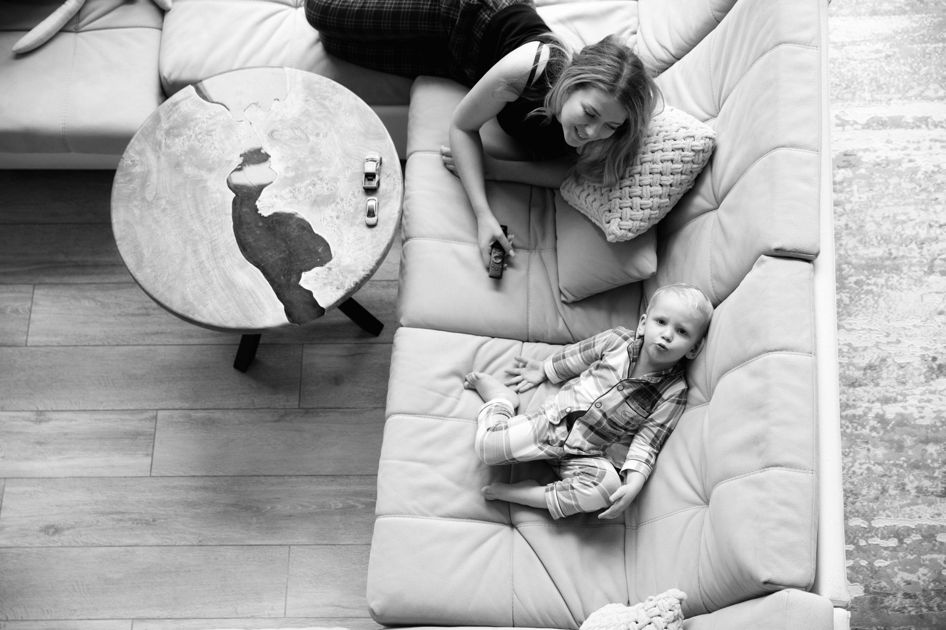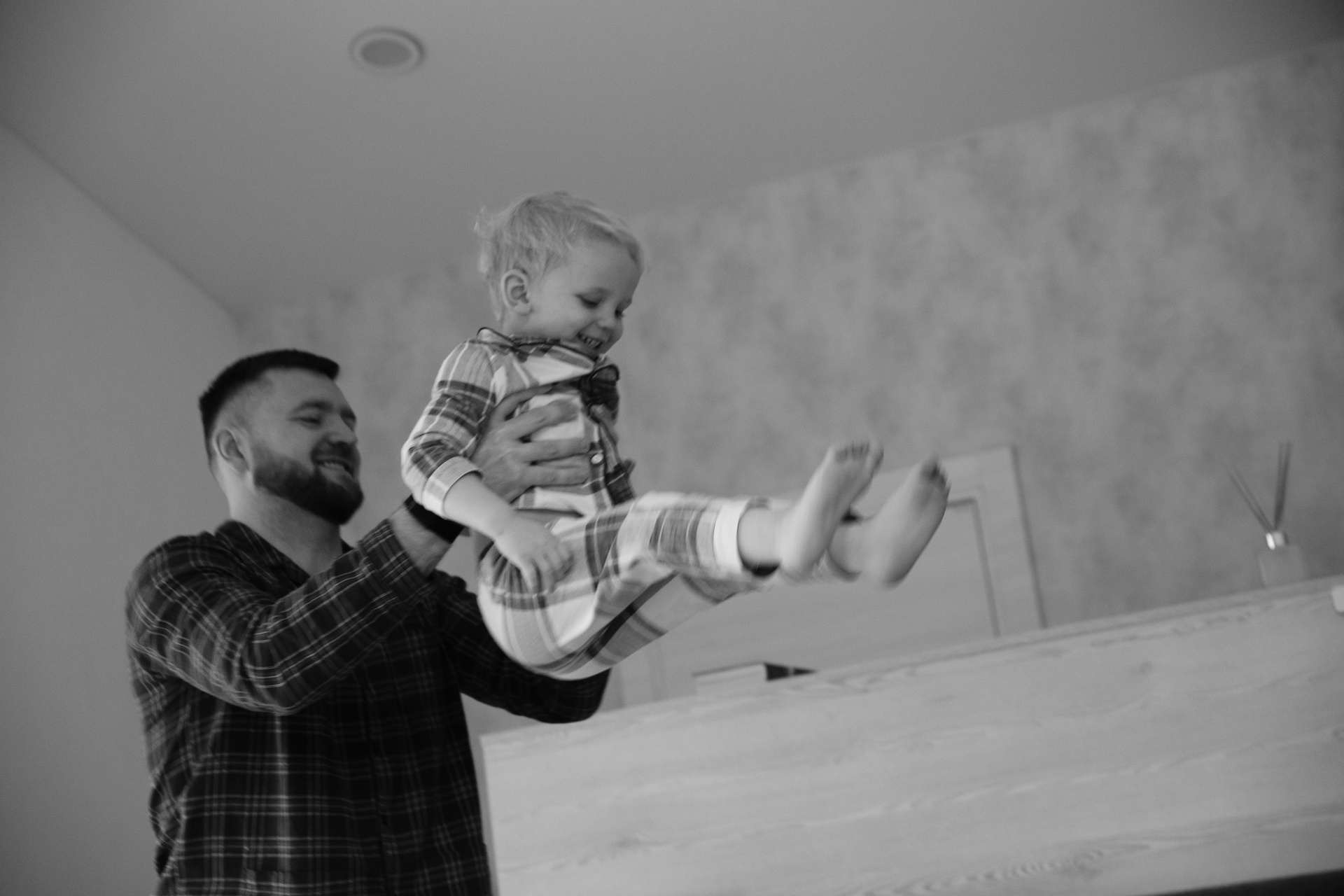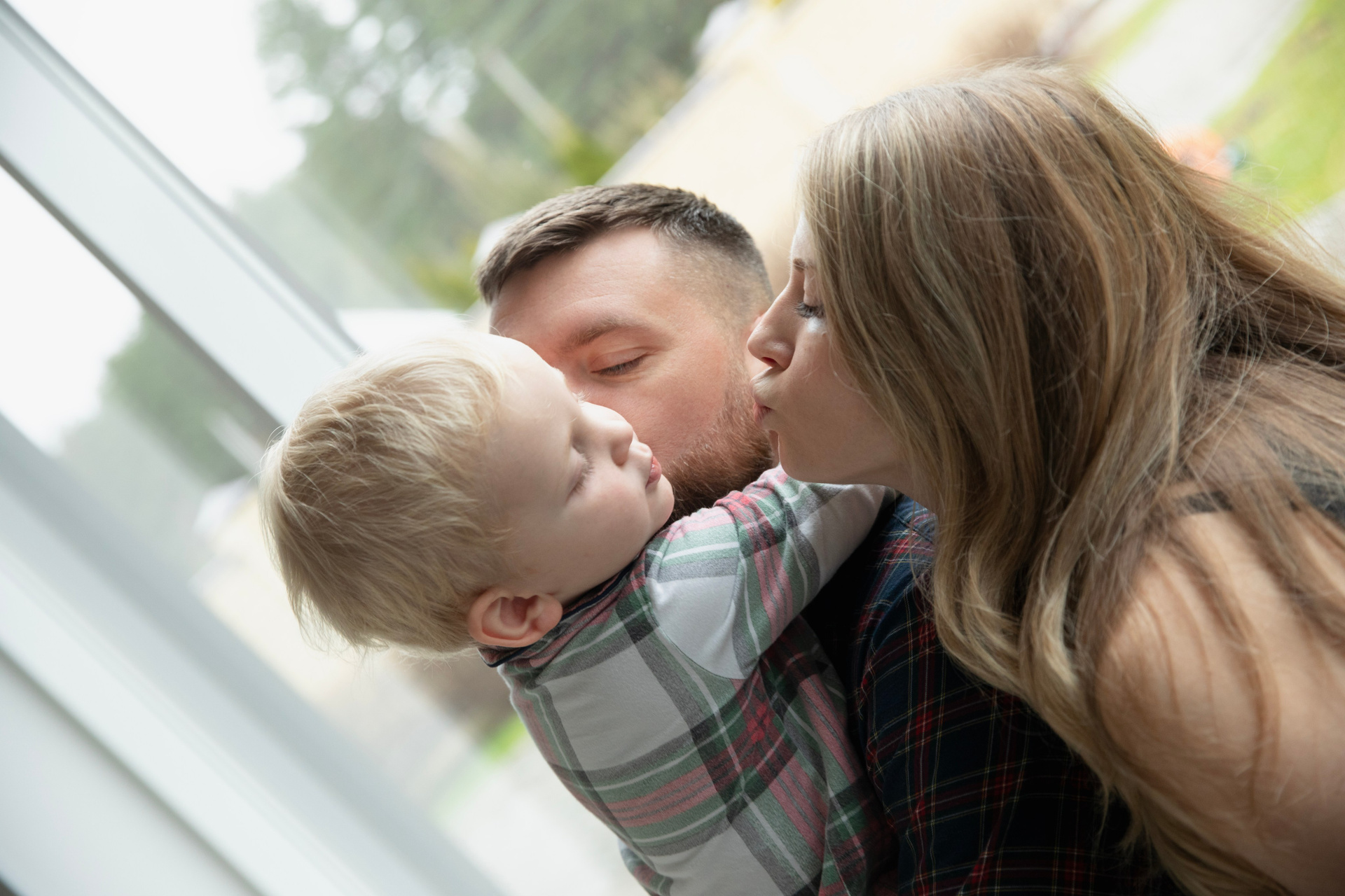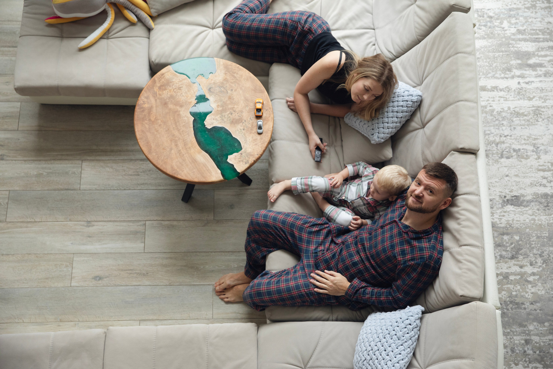 Домашняя съемка красивой семьи в солнечной квартире